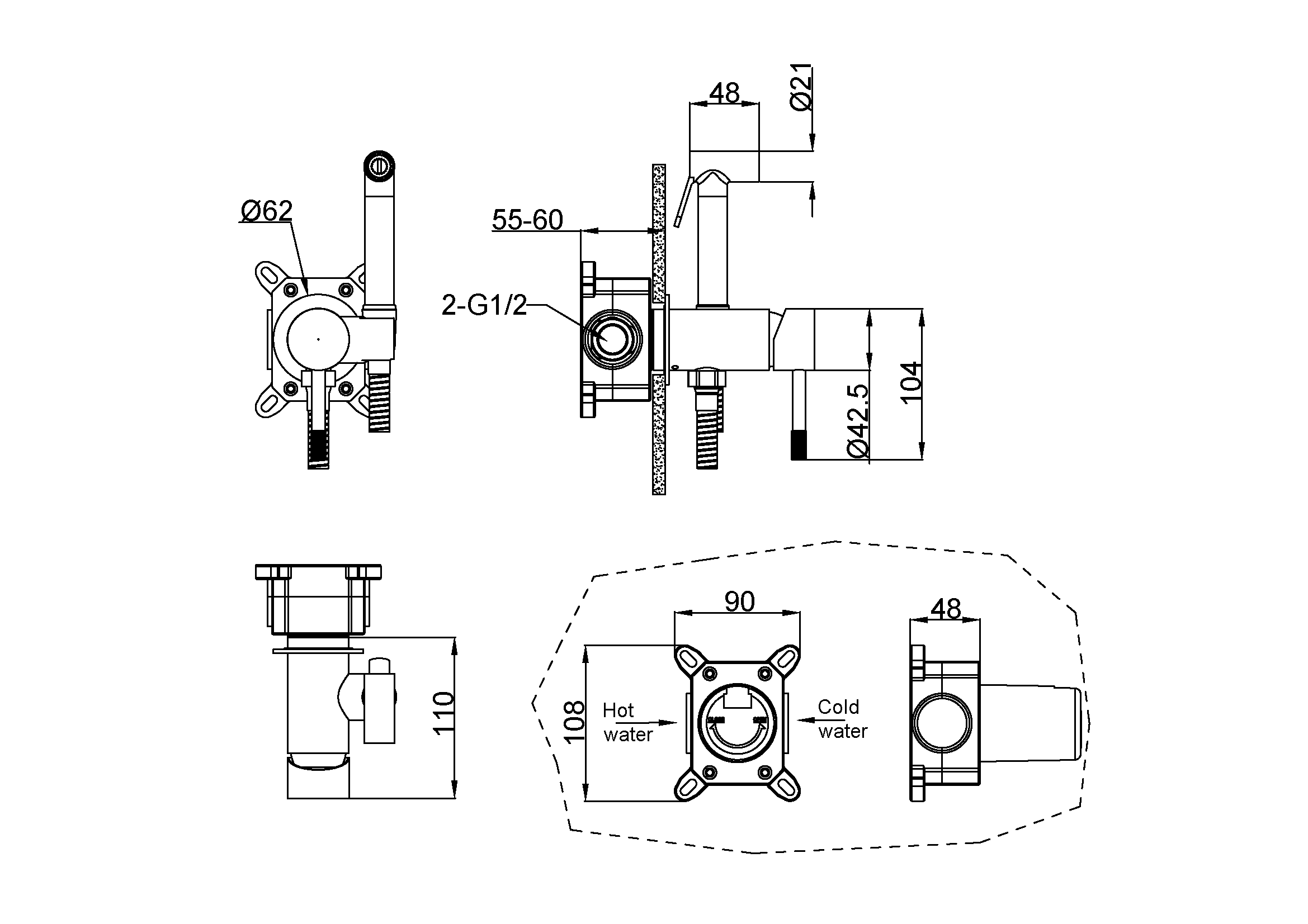 Смеситель встраиваемый Aller 10638 для душа с гигиенической лейкой