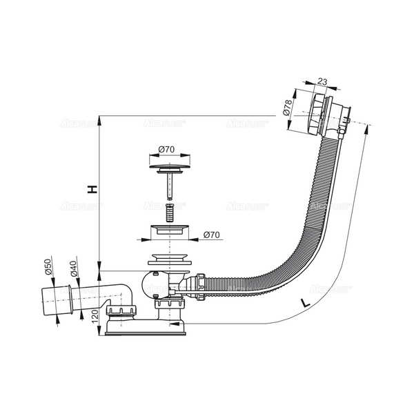 Сифон для ванны автомат металл/хром длина 80 см, A55KM-80