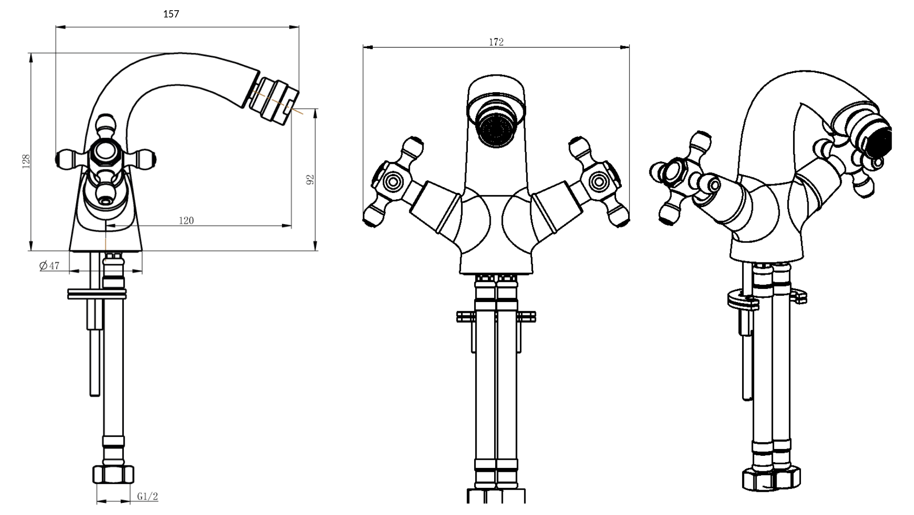 Смеситель для биде Boheme 296-FL, золото глянец