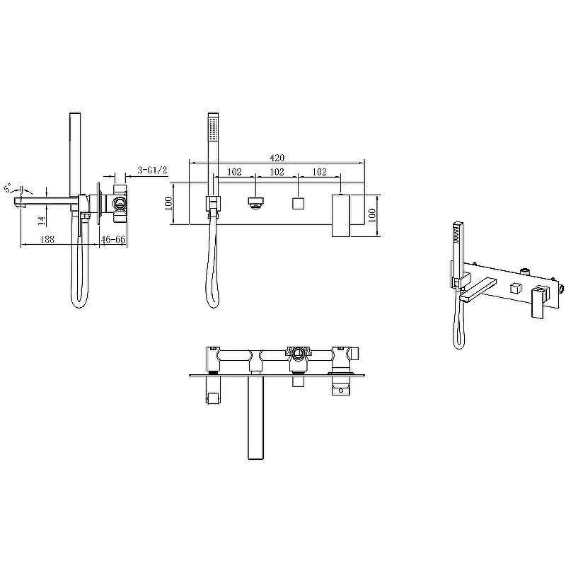 Смеситель для ванны встроенный Qubic Matt Gold 474-2-MG